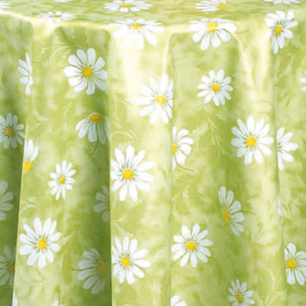 Wachstuchtischdecke Gänseblümchen 2 grün, Meterware mit 140 cm Breite.