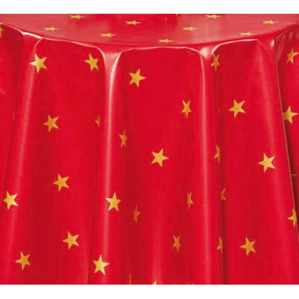 Wachstuchtischdecke Star rot/gold, Meterware mit 140 cm Breite.
